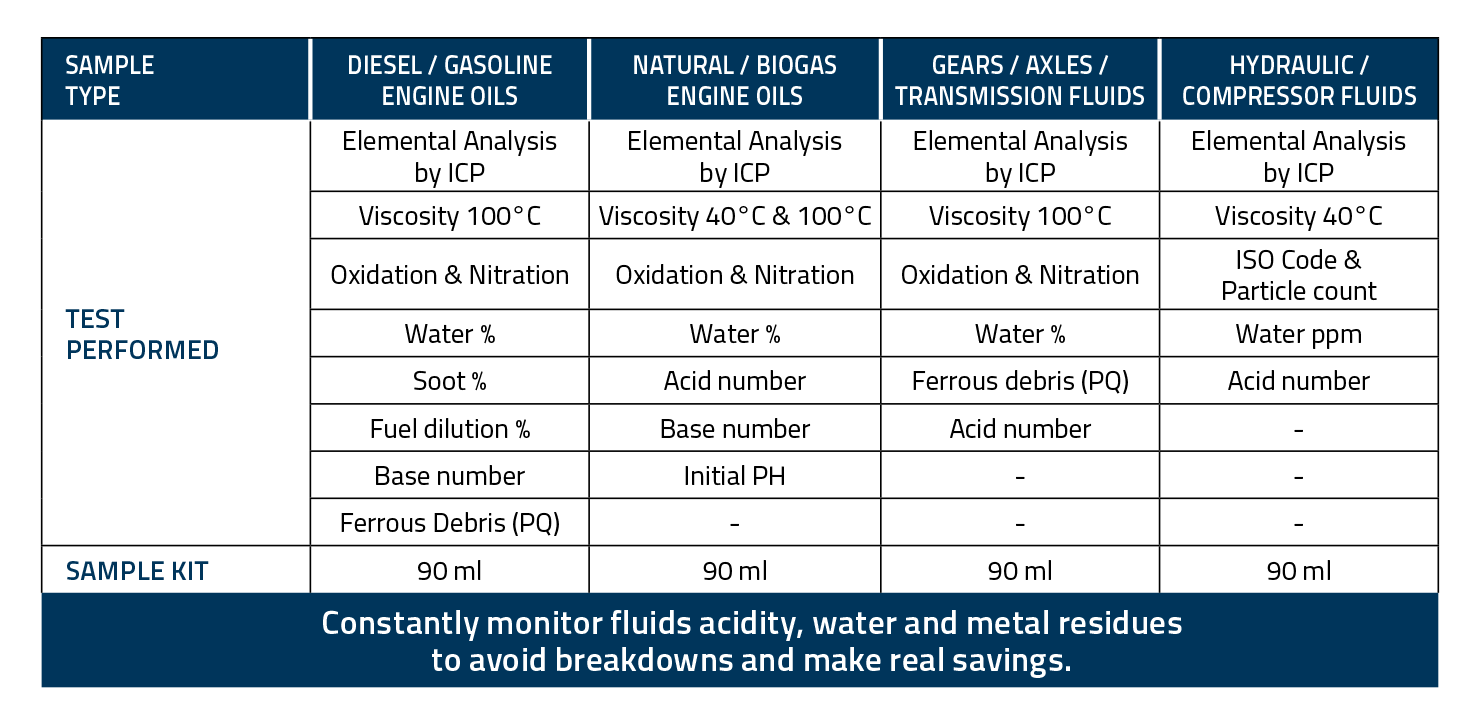 - We have designed the service to offer different levels of analysis and it can be tailored to customer requirements. Whether you are operating in a harsh environment or using particularly complex machinery, we can analyze your oil and make insightful maintenance recommendations.